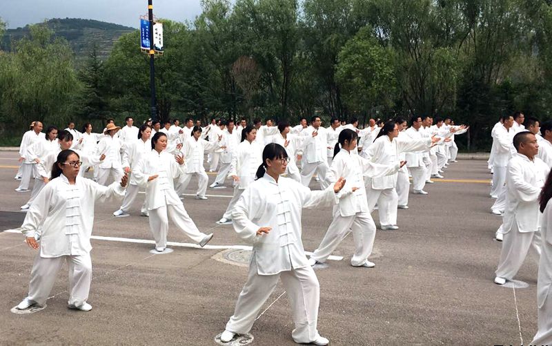 7月21日上午,第三屆絲綢之路(敦煌)國際文化博覽會(huì)平?jīng)龇謺?huì)場——2018年平?jīng)觥め轻嘉幕糜喂?jié)暨“弈決崆峒”世界道教名山圍棋邀請賽啟動(dòng)儀式后,萬人太極拳集體及方隊(duì)展演活動(dòng)在崆峒古鎮(zhèn)舉辦,公司組織100名太極拳愛好者參加展演。