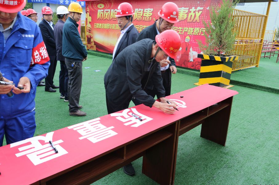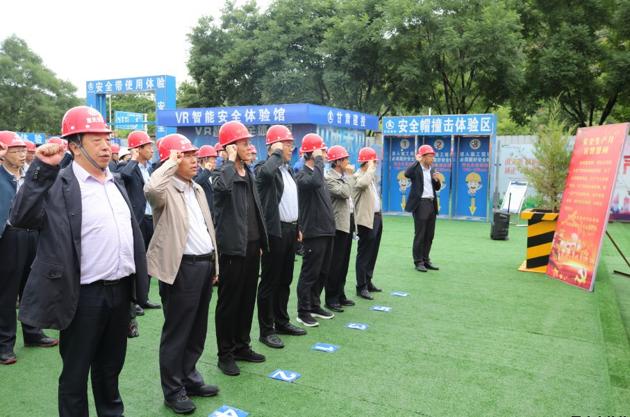 為深入學(xué)習(xí)宣傳貫徹習(xí)近平總書(shū)記關(guān)于安全生產(chǎn)的重要論述,積極響應(yīng)國(guó)家、省、市和上級(jí)有關(guān)單位關(guān)于開(kāi)展“安全生產(chǎn)月”活動(dòng)的號(hào)召,6月27日上午,公司在御景華府在建項(xiàng)目工地開(kāi)展2019年“安全生產(chǎn)月”活動(dòng)。公司黨委委員、總經(jīng)理胡紅訓(xùn),市安監(jiān)站站長(zhǎng)尚平,副總經(jīng)理魏顯文、馬新平、柳振源,總工程師高健,總經(jīng)濟(jì)師王國(guó)太,公司職工代表,御景華府、平?jīng)鲆恢泻突菝裢顿Y大廈項(xiàng)目各參建單位負(fù)責(zé)人,共計(jì)70余人參加本次活動(dòng)。