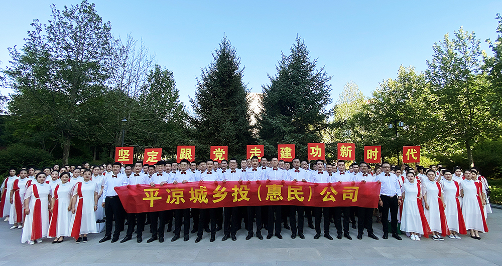 伴隨著悅耳的鋼琴聲,平涼城鄉(xiāng)投(惠民)公司合唱隊身著統一服裝,以整齊的隊列、飽滿的激情、良好的精神面貌閃亮登場,現場演唱了《追尋》、《偉大的祖國偉大的黨》兩首歌曲。全體合唱隊員以飽滿的熱情、昂揚的精神,把對黨、對國家、對家鄉(xiāng)的熱愛融入到美妙歌聲中,帶領現場觀眾回顧中國共產黨在過去的百年當中各項事業(yè)壯麗發(fā)展的一幕幕畫卷,讓人們重溫了黨帶領全國各族人民奮力奪取革命勝利的光輝歷史,抒發(fā)了“愿黨更好、更強”的火熱心聲和真誠祝福,充分展示了“惠民人”的精神風貌!