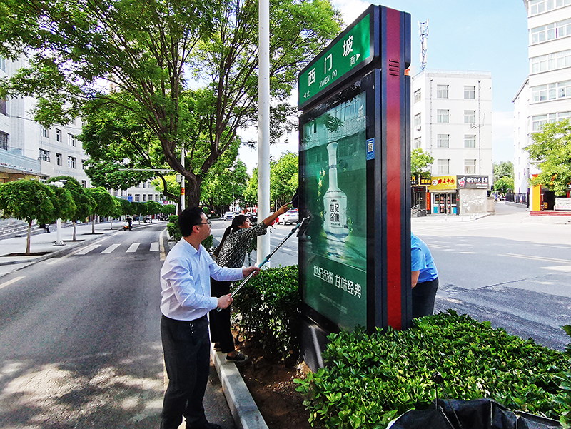 活動(dòng)中,全體員工分組前往西門坡、文化街、石家巷、西大街等城區(qū)主干道,對(duì)道路指示牌進(jìn)行了認(rèn)真細(xì)致的清洗,鏟除清潔了粘貼的小廣告,對(duì)廣告設(shè)施內(nèi)部電子元件做了維護(hù)保養(yǎng),確保箱體無積塵、無亂涂畫、無亂張貼等現(xiàn)象,以實(shí)際行動(dòng)為創(chuàng)建文明城市和公司發(fā)展貢獻(xiàn)力量。
