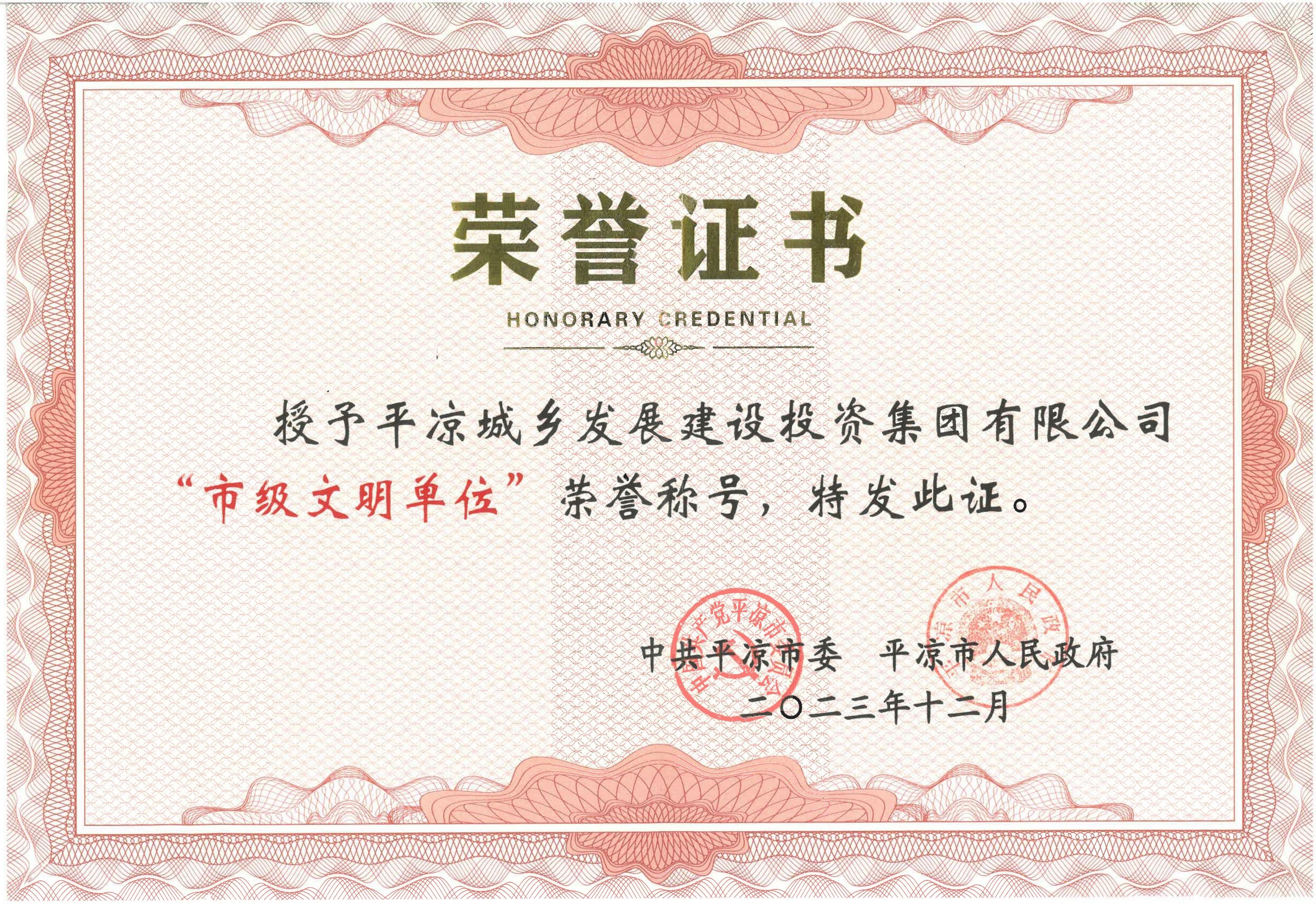 12月22日,市委、市政府印發(fā)《關(guān)于命名第二十四批市級文明單位、第十二批市級文明村鎮(zhèn)、第九批市級文明社區(qū)、第四屆市級文明校園和文明家庭的決定》,授予平?jīng)鍪谐青l(xiāng)發(fā)展建設投資集團有限公司“市級文明單位”榮譽稱號。