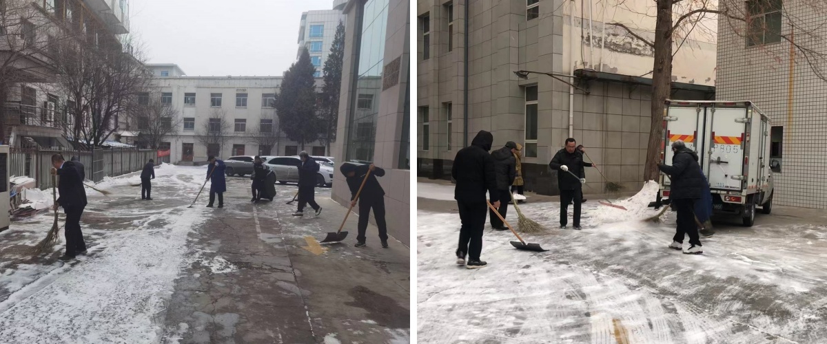 文化傳媒公司全體員工快速開展鏟雪除冰工作,將劇院外圍平臺、人行步道、車輛出入口、廣場等處的積雪進行了清掃。全體員工不畏嚴寒、干勁十足,用最短的時間為市民清理出了“安全通道”。