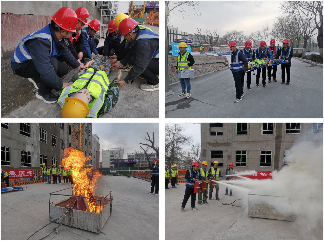 演練模擬項(xiàng)目某施工作業(yè)人員因違章操作引發(fā)高處墜落事故,現(xiàn)場(chǎng)項(xiàng)目部迅速啟動(dòng)項(xiàng)目突發(fā)事件應(yīng)急預(yù)案,展開(kāi)救援處置工作。各應(yīng)急小組及時(shí)趕至事故地點(diǎn),在確保自身安全的情況下,根據(jù)各自職責(zé)和分工,密切配合、高效銜接、科學(xué)施救、“墜落”人員得到有效“救治”。演練結(jié)束后,還進(jìn)行了滅火器等消防器材的使用培訓(xùn)。