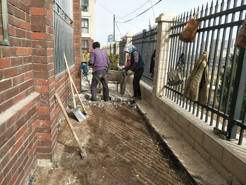 由于去年冬季溫度過低,惠民花園樓宇部分散水出現(xiàn)裂縫、沉降等問題,近日,物管站積極與施工單位銜接維修。目前,9、10號樓維修工作已基本結(jié)束。